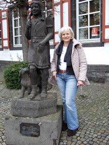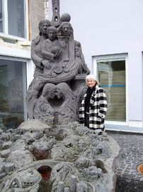 Das war mir neu. Das "Lewe Mayener Mädchen" vor dem Alten Rathaus in Mayen basiert auf einer Zeichnung von Walter Schäfer, die seine Frau Friedel zeigte.